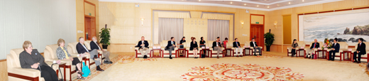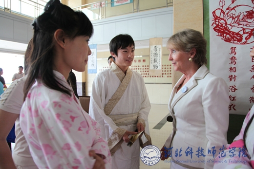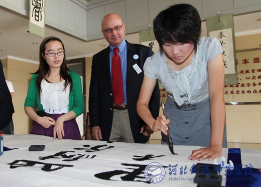 6月11日上午,校长汤生玲在best365秦皇岛校区主持欢迎和会见仪式,国际交流处处长东方阳等相关部门负责同志参加了会见仪式,并与美国阿拉巴马州政府和企业家代表团团长尼尔(Neal G.M.)等一行21人在秦皇岛校区进行了亲切会谈。