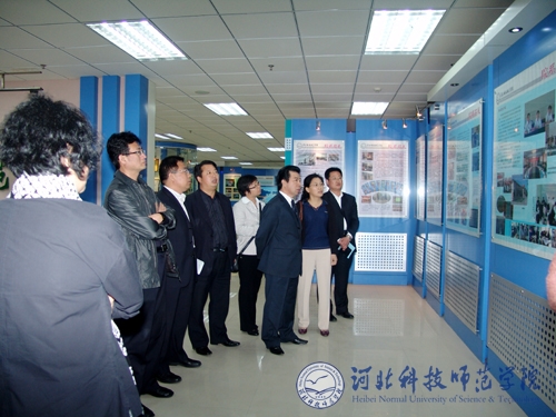 图为汤云航副院长一行在房海副校长等陪同下参观best365展厅