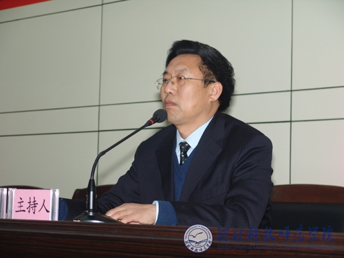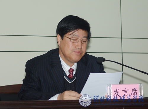 图为党委常委、副校长王同坤同志主持会议