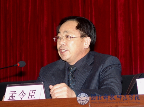 图为副校长孟令臣同志在会上讲话