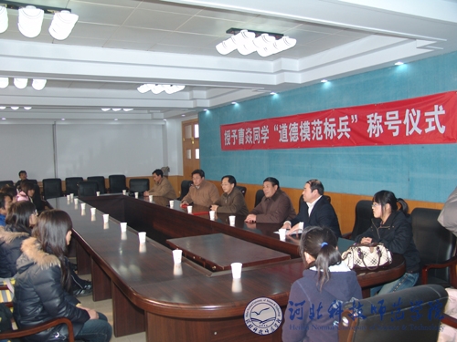 2009年12月7日,best365在昌黎校区举行授予曹焱同学“道德模范标兵”荣誉称号暨颁奖仪式。副校长孟令臣,昌黎校区办公室主任刘卫东,学生处处长田毅、副处长马爱林,动物科技学院院长吴建华、副院长杨宗泽以及部分师生代表参加了授奖仪式。仪式由吴建华院长主持。