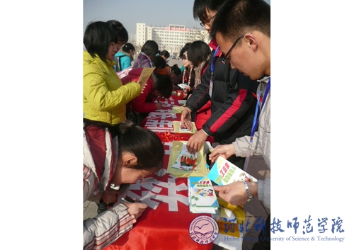 2009年11月30日至12月5日,外国语学院学生会青年志愿者协会与秦皇岛市红十字会共同在开发区校区举办大型艾滋病宣传周活动。12月1日是全球第22个艾滋病宣传活动日,秦皇岛市红十字协会疾病预防中心秘书长刘翠、外国语学院团总支负责同志以及外国语学院青年志愿者参加了活动。活动中,过往师生纷纷在宣传横幅上签名,外国语学院青年志愿者向过往师生发放了由外国语学院学生会成员自己制作的象征关爱艾滋病的红丝带,发放了由市红十字会协会提供的宣传手册和宣传海报。秦皇岛市电视台记者对此次活动进行了现场采访。