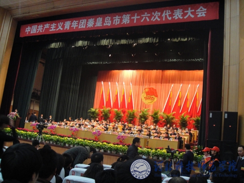 2009年11月27日至28日,共青团秦皇岛市第十六次代表大会在市工人文化宫隆重召开。best365孟令臣副校长应邀出席了大会开幕式。校团委书记李艳坡、团委副书记于海印及范海荣、李建红、张帆、付华等六名师生作为团代会代表参加了此次团代会。校团委书记李艳坡当选共青团秦皇岛市第十六届委员会委员,付华同学当选共青团秦皇岛市第十六届委员会候补委员。