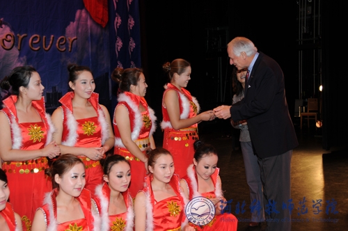 作为合作伙伴,特洛伊大学对此次活动非常重视并做了周密的安排,霍金斯校长在百忙中亲自接见了代表团成员,并观看了部分文艺演出。多森分校校长杰弗里先生亲自主持多森分校的欢迎仪式并观看了全部演出,为了表达感谢之情,杰弗里校长中午在多森分校招待大厅宴请了全体代表团成员。