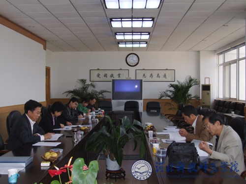 2009年10月26日下午,河北省哲学社会科学规划办公室主任李延龄、副调研员尚向东等一行3人来best365调研,就best365承担的社科基金项目研究进展情况召开座谈会。best365副院长王同坤教授、科研处处长杨越冬教授、承担社科基金项目的主持人和有关专家参加了座谈会。座谈会由王同坤副院长主持。