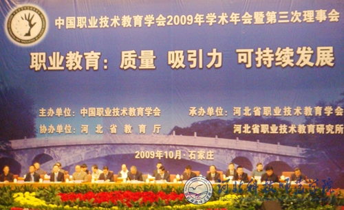 中国职业技术教育学会2009年学术年会暨第三届理事会第三次会议于2009年10月25日在省会石家庄召开。河北省副省长龙庄伟、教育部职成教司司长葛道凯等到会并讲话,近300名职业院校的专家、领导及30多位行业协会的领导和企业董事长、总经理等参加了会议。会上,汤生玲院长作了题为《职业教育如何增强对农村学生和家长吸引力》的嘉宾发言,深刻分析了农村学生和家长接受职业教育的“五大目标”,并从改善职业学校办学条件、营造良好的就业环境、实施城乡联合办学等七个方面就职业教育如何增强对农村生源和家长的吸引力问题进行了论证。