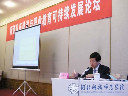 图为院长汤生玲教授在主持师资队伍建设与职业教育可持续发展分论坛