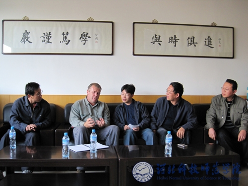 10月5日上午,教务处处长李佩国教授、机电工程学院副院长刘荣昌博士以及相关专业教师在昌黎校区主楼2楼A区小会议室对Dormigan教授的来访举行了简短而热情的欢迎仪式,李佩国处长首先介绍了best365的基本情况,并代表best365国际交流中心就best365与林肯大学互派留学生、教师互访、学术交流、科研项目合作等事宜与Dormigan教授进行了广泛而有针对性的洽谈并达成了初步共识;机电工程学院副院长刘荣昌博士就机械学科的科研合作问题与Dormigan教授交换了意见,就水力发电、太阳能发电等项目合作拟定了具体的实施步骤。 10月9日下午,在机电工程学院副院长包长春教授及相关部门负责人的陪同下,Dormigan教授饶有兴趣地考察了机电工程学院实验室和金工实习工厂,宾主双方就工科实验室建设交流了经验和看法。10月10日下午, Dormigan教授与机电工程学院教授、博士、机械制造专业教学部等相关学科的教师进行了座谈。座谈会上Dormigan教授详细介绍了新西兰林肯大学的科研情况,与会人员就感兴趣的研究领域与Dormigan教授进行了深入交流。Dormigan教授在访问期间还为best365相关专业学生以及在best365学习培训的2009年第二期国家骨干教师培训班学员作了学术讲座,在机电工程学院李承志老师陪同下Dormigan教授参观了best365的秦皇岛校区、开发区校区和昌黎校区。