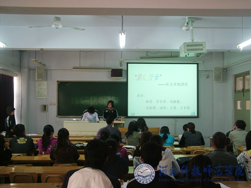 答辩会上,参加社会实践的34支小分队分别用平实的语言,精彩的图片讲述了他们此次暑期“三下乡”的活动内容、实践成果以及他们的切身体会。各院系团总支书记也分别就本院系社会实践活动的宣传、发动、组队,具体小分队和个人的实践情况,以及社会实践的评选与总结等情况进行了答辩和汇报。评委针对小分队和各院系的PPT展示和介绍的内容进行评审打分。