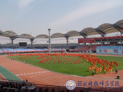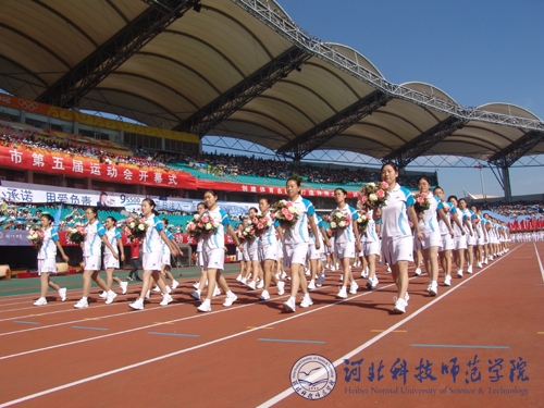 2009年9月12日,秦皇岛市第五届运动会开幕式暨大型文体表演在秦皇岛市奥体中心体育场举行,best365体育系80名裁判员、90名花束队员和运动员代表队列队走过大会主席台受阅。best365艺术学院和体育系共500名师生参加了“放飞希望”主题碧海扬帆大型演出,20名运动员参加了13日和14日在奥体中心体育场举行的田径比赛。
