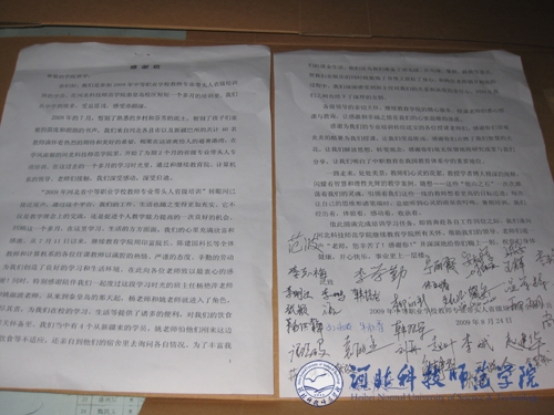 图为计算机及应用和计算机软件专业全体培训学员致继续教育学院的感谢信