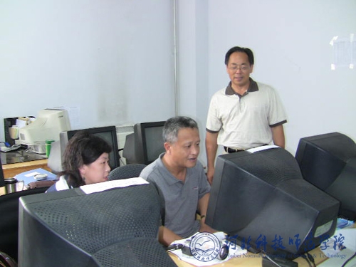 图为党委书记石千峰、副院长孟令臣在专科一批录取工作现场检查指导工作