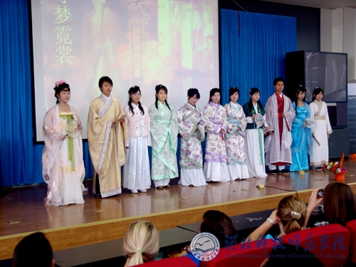 图为来访师生在观看best365文法学院大学生的中国传统文化服饰展演