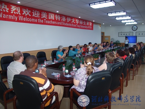 2009年6月30日下午,美国特洛伊大学孔子学院师生一行21人来best365访问。党委书记石千峰、院长汤生玲、副院长房海出席在秦皇岛校区举行的欢迎仪式,并与来访师生交流座谈。教务处处长、国际交流处处长李佩国以及外国语学院师生代表等参加座谈会。