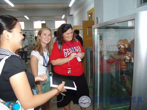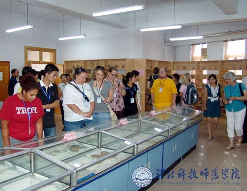 座谈会前,美国特洛伊大学师生一行首先在昌黎校区先后参观了best365生命科技学院动植物标本馆、河北省预防兽医学重点实验室、食品工程系酿酒实验室等。7月1日,来访师生在开发区校区分组听取了文法学院对外汉语教学文化课、体育系中华武术课、艺术学院声乐教学课,参观了艺术学院动漫设计专业作品展,观看了文法学院中国传统文化茶艺表演、服饰展演,参观了文法学院中国剪纸、中国书法展。参观结束后,来访师生与best365师生进行了中美友谊篮球比赛。晚间,汤生玲院长、孟令臣副院长陪同来访师生共同观看了“仲夏之约”中美交流师生联谊晚会。特洛伊大学师生的来访,对于增进中美两国人民友谊,促进两校文化交流,更好地展现中国传统文化的深厚底蕴和丰富内涵,让国外友人更好地了解中国,了解best365发挥了积极的促进作用。