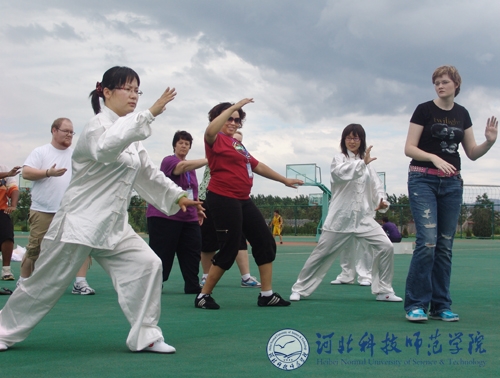 图为来访师生在学练中国太极拳