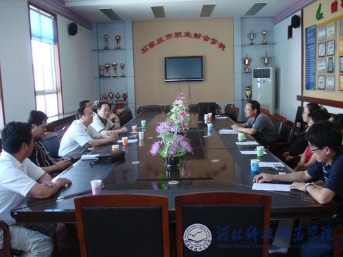 图为孟令臣副院长一行在石家庄职业财会学校座谈