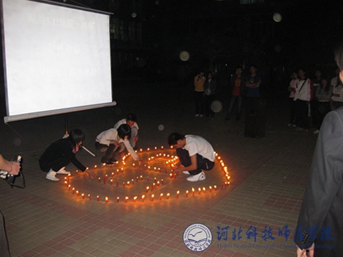 2009年5月12日,机电工程学院在昌黎校区举办了汶川地震一周年系列纪念活动。机电工程学院130余名学生参加了活动。