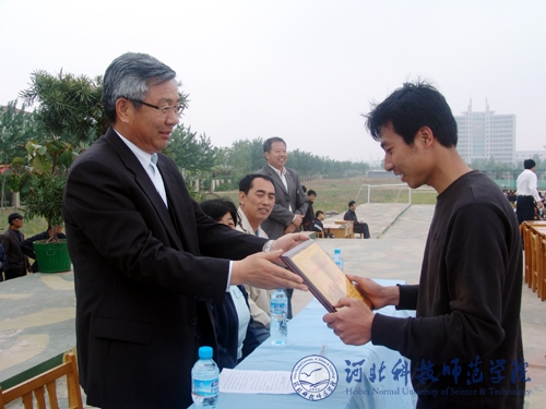 图为校领导在秦皇岛校区为获奖单位代表颁奖