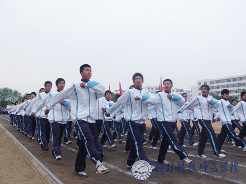 图为秦皇岛校区运动员在接受检阅