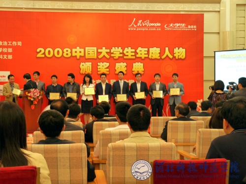 2009年4月28日,在“五四”青年节即将到来之际,备受社会各界关注的“2008中国大学生年度人物”评选活动在人民大会堂举行颁奖典礼。best365生命科技学院荣获“2008中国大学生年度人物”评选活动组织奖。生命科技学院党委副书记、副院长孟庆东、团总支书记张帆受组委会邀请参加颁奖典礼并领取奖牌。