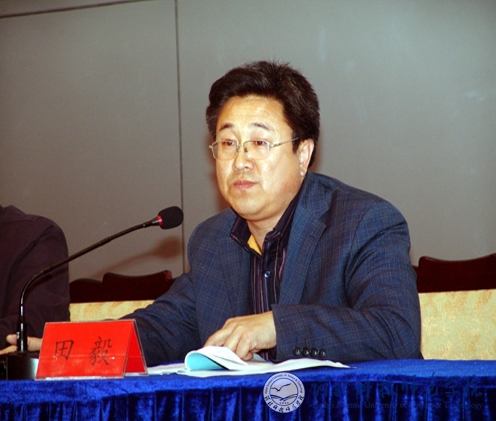 图为党委学工部部长、学生处处长田毅在会上发言