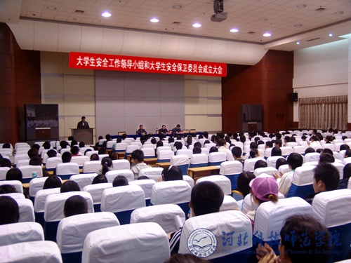 2009年4月16日,best365大学生安全工作领导小组和大学生安全保卫委员会成立大会在秦皇岛校区学术报告厅召开。副院长孟令臣出席会议并讲话。保卫处处长胡志杰,党委学工部部长、学生处处长田毅以及保卫处与学生处等相关部门工作人员和全校大学生代表参加了会议。