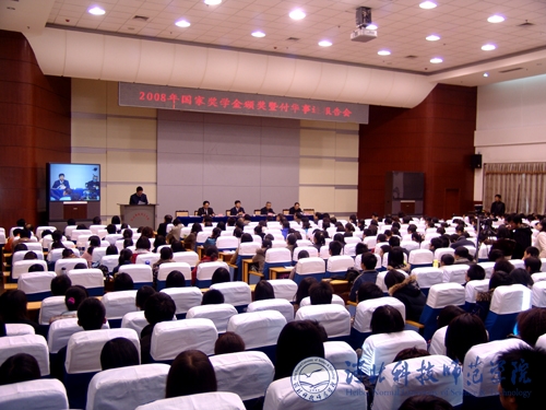 图为2008年度国家奖助学金颁奖暨付华事迹报告会会场