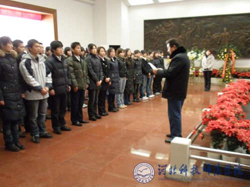 2008年12月21日,农学系开展了“重温入党誓词,继承先烈遗志”主题革命传统教育实践活动。农学系全体党员怀着对革命先烈无比崇敬的心情,前往乐亭县李大钊烈士纪念馆参观学习。系党总支书记、主任李彦生,副主任乔亚科,副书记、副主任高玉峰以及部分教师党员和全体学生党员、入党积极分子代表与学生代表共88名同志参加了活动。