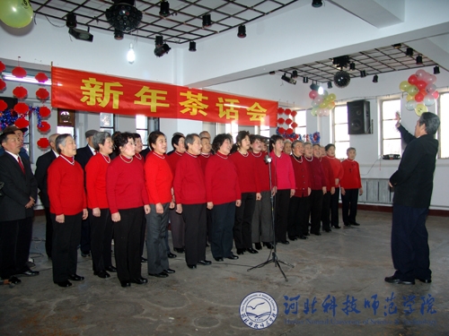 图为我院离退休老同志在迎新年茶话会上用歌声表达对新年的祝福