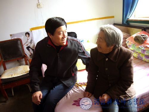 汤院长首先代表学院向付华母亲致以亲切的问候,对老人含辛茹苦地收养和教育了付华表示由衷地钦佩和感激。他欣喜地告诉老人,2008年12月11日,秦皇岛市文明委在我院秦皇岛校区举行了隆重的仪式,授予付华同学“文明秦皇岛人标兵”的光荣称号。这既是对我院付华同学的奖励,同时也是我们学院的光荣。