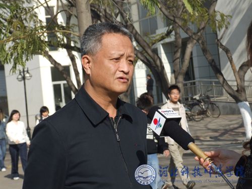 图为best365党委书记石千峰同志在接受记者采访