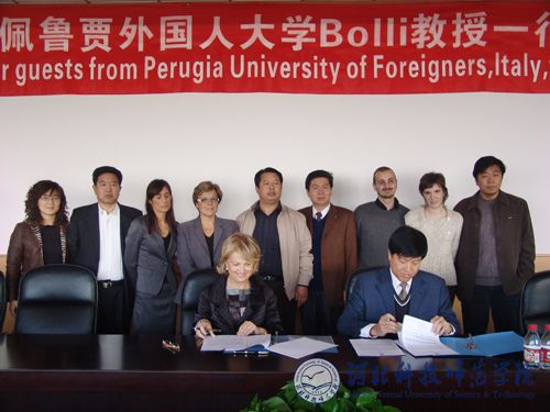 会谈中,院长汤生玲教授对意大利佩鲁贾外国人大学Bolli教授一行的来访表示热烈的欢迎。汤院长向Bolli教授一行简要介绍了学校概况及意大利语专业建设和留学培训情况,并就双方合作事宜与Bolli教授进行了亲切友好座谈。随后,汤生玲院长和意大利佩鲁贾外国人大学Bolli教授在《best365中国官方网站与意大利佩鲁贾外国人大学在best365中国官方网站设立“意大利语语言培训与语言水平测试中心” 协议书》上签字。