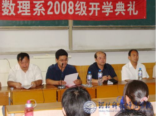 2008年9月18日下午,best365数理系在秦皇岛校区逸夫教学楼B104组织开展了2008级新生入学教育活动。数理系党总支副书记、副主任贠小波,党总支副书记肖欣,副主任申玉发及各专业带头人、学术带头人、全体教授、博士、各专业教研室主任、副主任、科级干部、部分教师代表及137名新生参加了数理系2008级新生开学典礼仪式。