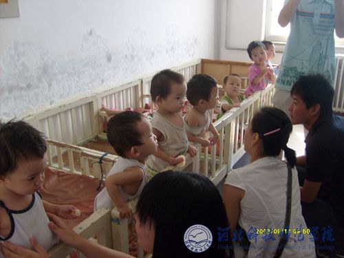 图为社会科学系团员青年在秦皇岛市社会福利院看望被遗弃的孩子们