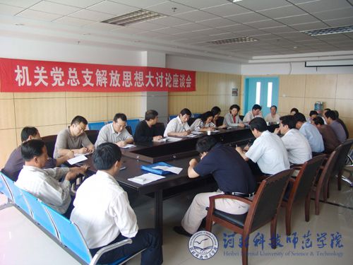 2008年6月11日下午,best365机关党总支在秦皇岛校区图书馆9楼会议室组织召开解放思想大讨论座谈会。机关党总支各党支部书记共20余人参加了座谈。
