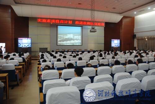 图为与会代表在观看best365《实施素质提高计划,推进教师队伍建设》宣传片