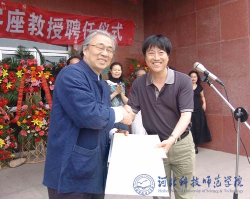 仪式上,秦皇岛市政府台湾事务办公室主任廉茹艳、秦皇岛市文联主席牛兴国分别致辞,我院党委副书记、院长汤生玲教授发表了热情洋溢的讲话,并向颜圣哲先生颁发了我院客座教授聘任证书,赠送了《秦皇岛旅游风光摄影集》纪念品。 颜圣哲先生向我院回赠《春风化雨》书画作品,向我院艺术系赠送《传艺》书法作品。