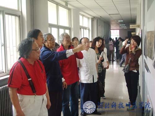 仪式结束后,各位领导和艺术系师生一起兴致勃勃地参观了颜圣哲先生教学成果展。秦皇岛市电视台、《秦皇岛日报》、《秦皇岛晚报》等新闻媒体对本次活动现场进行了采访报道。