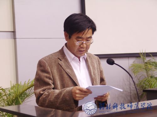 图为院长助理、后勤校产党委书记王子茂同志在致开幕词