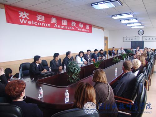5月3日下午5:30,汤生玲院长在best365秦皇岛校区11楼1号会议室举行了欢迎仪式,并召开座谈会。汤生玲院长对美国ELT组织教师团一行的到来表示热烈的欢迎和衷心的感谢。汤院长简要介绍了best365所处滨海旅游城市,同时也是2008年北京奥运会的协办城市—秦皇岛概况和best365现状及未来发展情况,并预祝美国ELT组织所有成员在best365开展为期一周的英语教学周活动取得圆满成功。