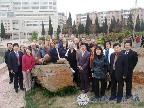 5月3日下午5:00,“国际友谊园”在best365秦皇岛校区曦园正式建成。建园仪式上,中美双方代表共同开展了植树活动。校领导汤生玲、房海及武士勋、宋士清等相关部门负责同志与美国ELT组织教师团成员共同栽下象征中美双方长久友谊的“银杏树”,对进一步增进中美两国人民之间的友谊,大力提高best365的英语教学水平奠定了良好的基础。植树活动结束后,双方成员共同在“国际友谊园”岩石上合影留念。