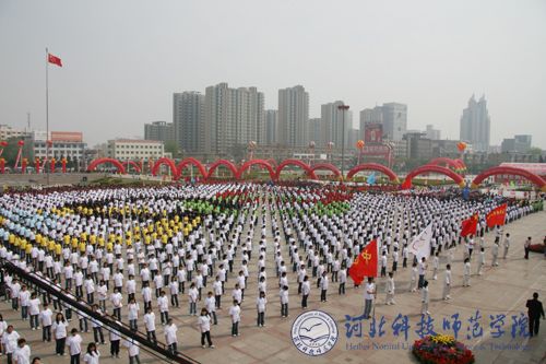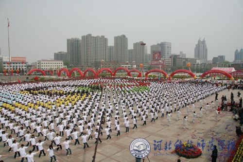 2008年4月28日上午10:00,秦皇岛市“全民健身与奥运同行”主题迎奥运全民健身节活动在市人民广场隆重举行。best365体育系党总支书记陈庆合,副书记郭立昌及体育系相关教师代表率领学校2008名大学生太极拳表演运动员参加了开幕式。