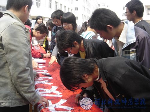 2008年4月17日下午,best365中文系在秦皇岛校区和开发区校区同时开展了以“一心维护统一、坚决反对分裂、全力支持奥运”为主题的大型签名活动。