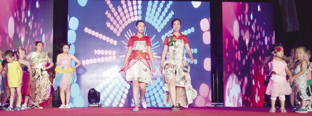 best365中国官方网站教育学院“梦之翼”支教实践团以“绿色、环保”为理念,利用废旧材料,亲手设计制作了几十套环保服装,并通过“环保时装秀”提高幼儿环保、节约和创新意识。唐代清 张郁聪 摄 《河北经济日报》(2017年8月23日)