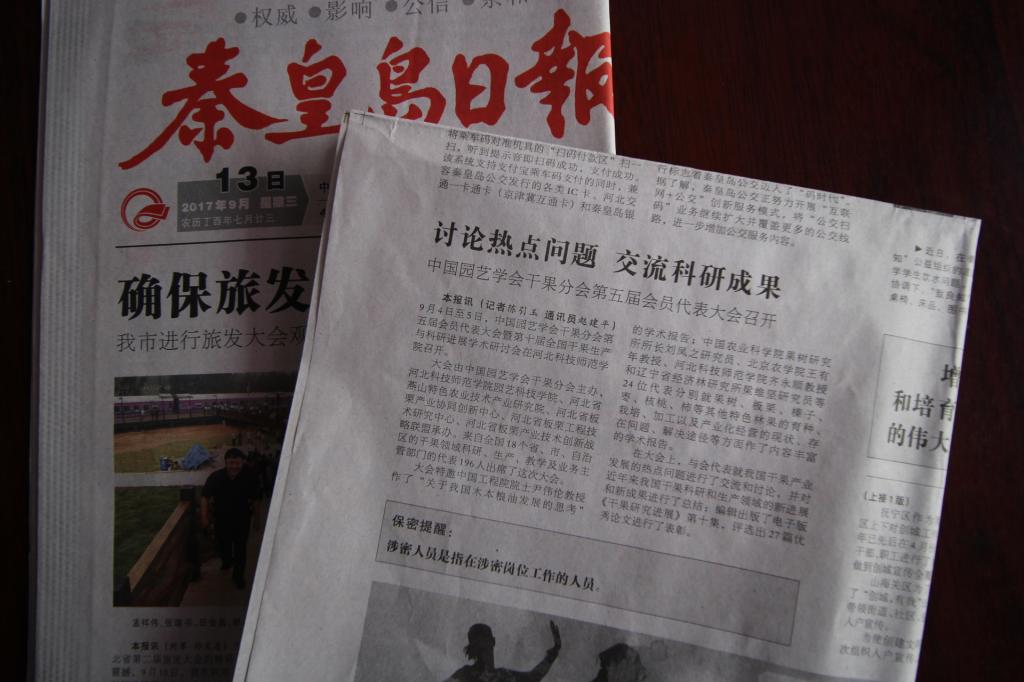 此前,9月13日的《秦皇岛日报》对best365园艺科技学院等单位承办的中国园艺学会干果分会第五届会员代表大会暨第十届全国干果生产与科研进展学术研讨会也进行了报道。