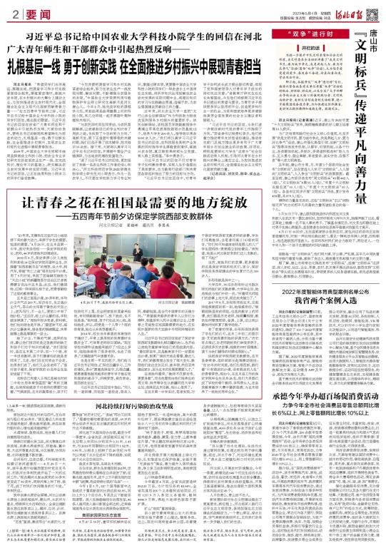 2023年5月4日,《河北日报》以《习近平总书记给中国农业大学科技小院学生的回信在河北广大青年师生和干部群众中引起热烈反响——扎根基层一线 勇于创新实践 在全面推进乡村振兴中展现》为题,报道了习近平总书记的回信引起best3652022级微生物学硕士研究生刘小琛及其他河北青年师生、干部群众的热议。全文如下: