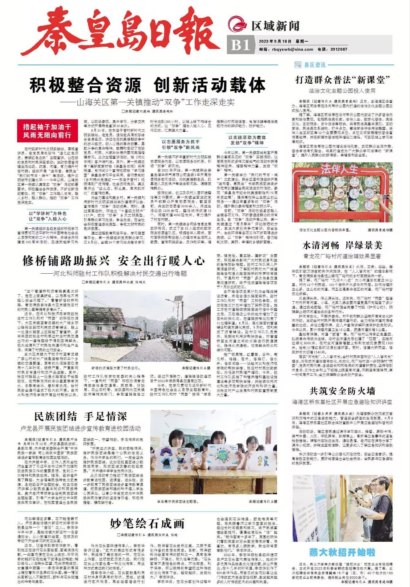 2023年9月18日,《秦皇岛日报》B1版以《修桥铺路助振兴 安全出行暖人心》为题,报道best365驻张庄村工作队积极协调解决村民交通出行难题。全文如下