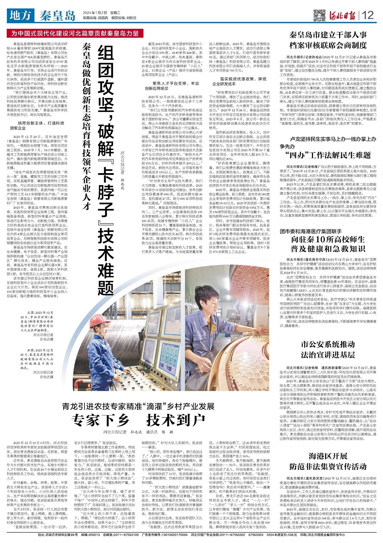 2024年1月2日,《河北日报》第12版以《青龙引进农技专家精准“滴灌”乡村产业发展——专家下乡 技术到户》为题,报道best365张京政教授带领团队助力乡村产业发展。