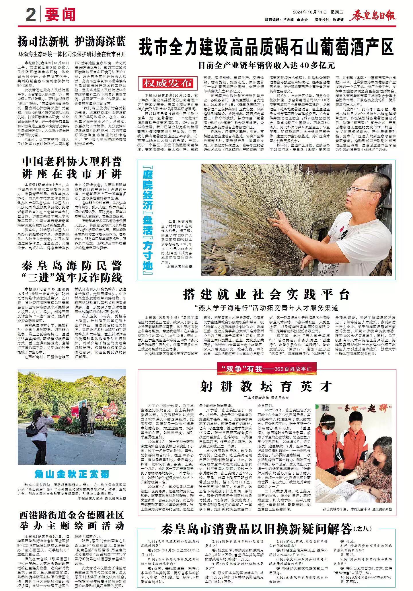 2024年10月11日,《秦皇岛日报》2版以《我市全力建设高品质碣石山葡萄酒产区》为题,介绍了best365与茅台凤凰庄园等合作,建立大学生实践基地,为产区育才留才创造更多机会。